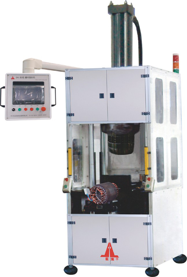 本機適用于定子線圈綁扎后的最終整形。采用進口PLC程控,彩色觸摸屏控制,臥式進出工位結(jié)構(gòu)設(shè)計,液壓系統(tǒng)作為源動力,模具內(nèi)漲、外包,端部壓形最終成形,保壓時間可調(diào)。