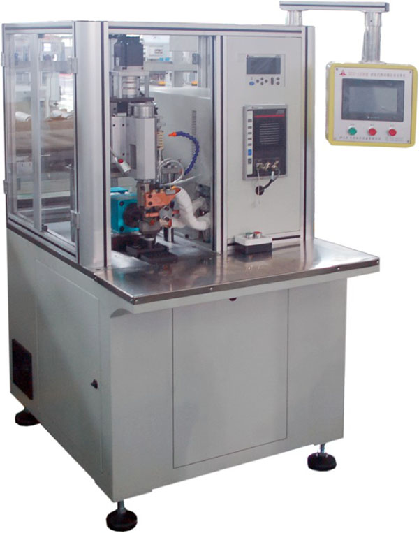 This machine is designed for motor commutator and thicker armature winding connection of a special welding equipment.Imported PLC controller and touch screen display control welding action, servo motor torque control mode pressure, driven by synchronous pulley screw control welding, in a single solder joint can be set pressure, the configuration of high-power MMA sub-inverter welding Machine control, can be set current, constant power, constant voltage control, a variety of welding code number, multi-section power mode. With the current slow rise, slow down function. Can be selected by the reasonable choice of welding current to achieve high-quality welding, the workpiece mechanical positioning on the slot, can be set to the angle compensation, with built-in cooling water tank, import solenoid valve control welding cylinder, fast and stable, all actions once completed Simple, superior performance, high-quality welding.
